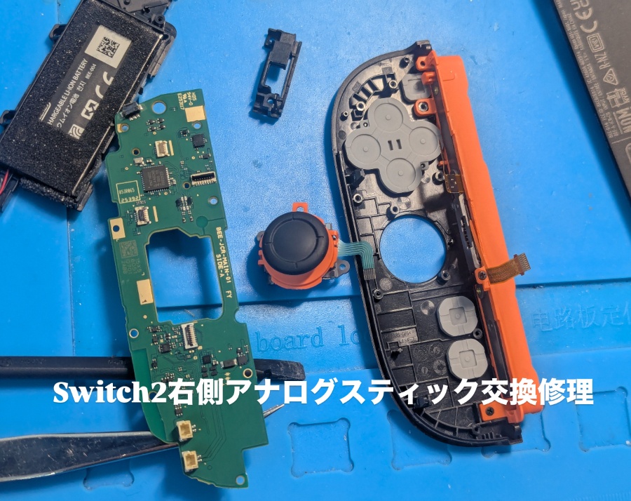 Switch2のアナログスティックがグラグラして使えないとお問合せいただき交換修理をいたしました。初期の交換修理と違い分解しての交換のため、交換料金3,500円んで修理しております